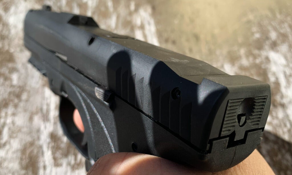 There is also a loaded-chamber window above the ejection port. The double-action striker cocks and releases with the striker protruding from the rear of the slide as the trigger is pulled. What is missing and perhaps a worthy exclusion for this particular model is any provision for an optic.