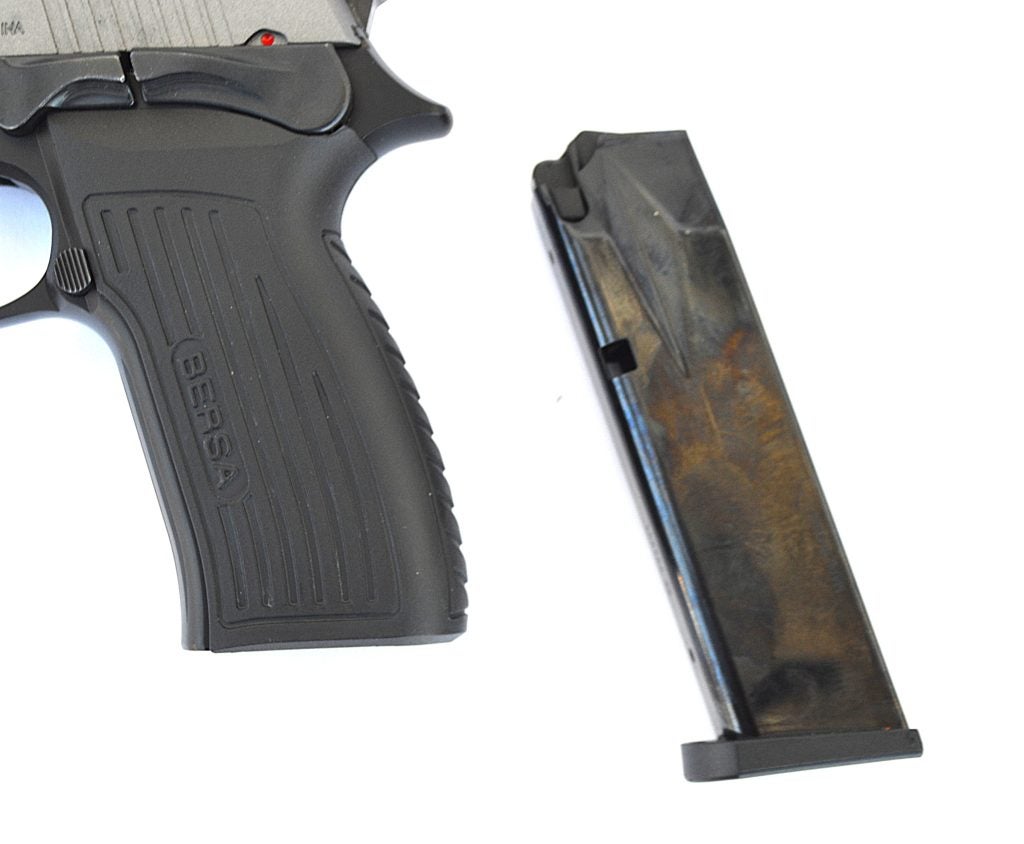 My sample included electroless-nickel slide finishing. Overall fit and finish were good. Online prices averaged below $500, and I found a blued model locally for $375. The blued finish is a durable phosphate style commonly seen on well-used Bersas. While Bersa’s .380 pistols are more common, their 9mm line deserves attention.