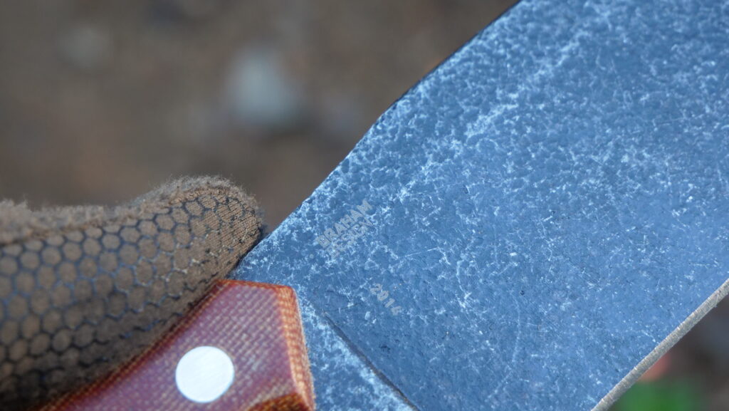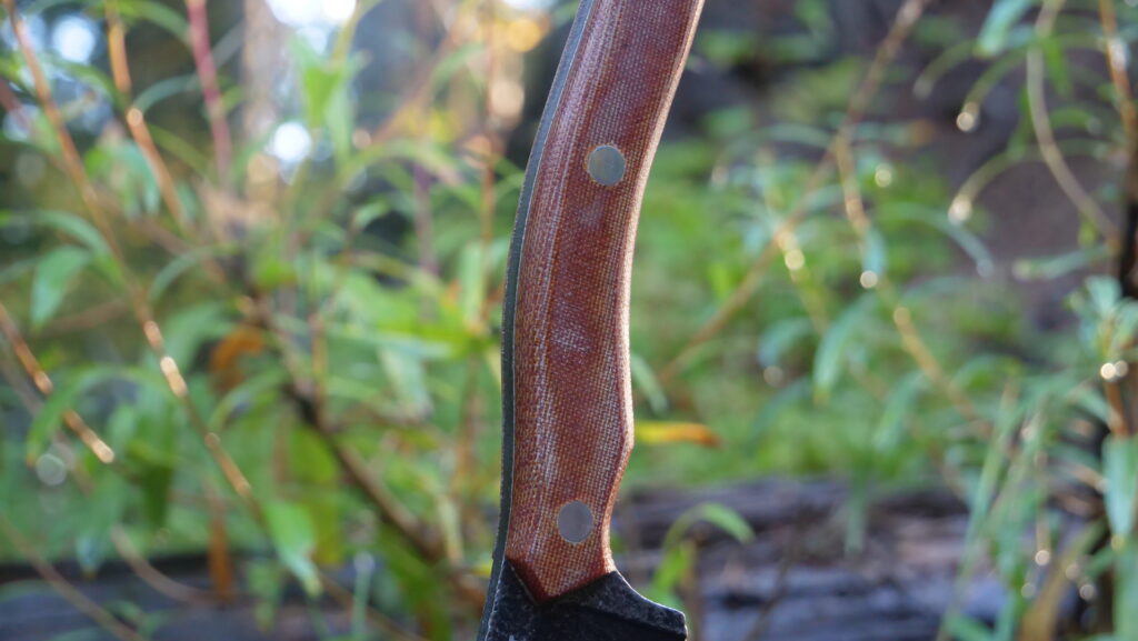 As I said earlier, the blade is a scaled-up take on Jon Graham’s classic Razel design. As odd as it looks, I think it perfectly fuses the hard edges of a chisel with enough sweeping belly and mass to hint at axe-level chopping power – you can’t help but want to chop things when you hold it in your hand.