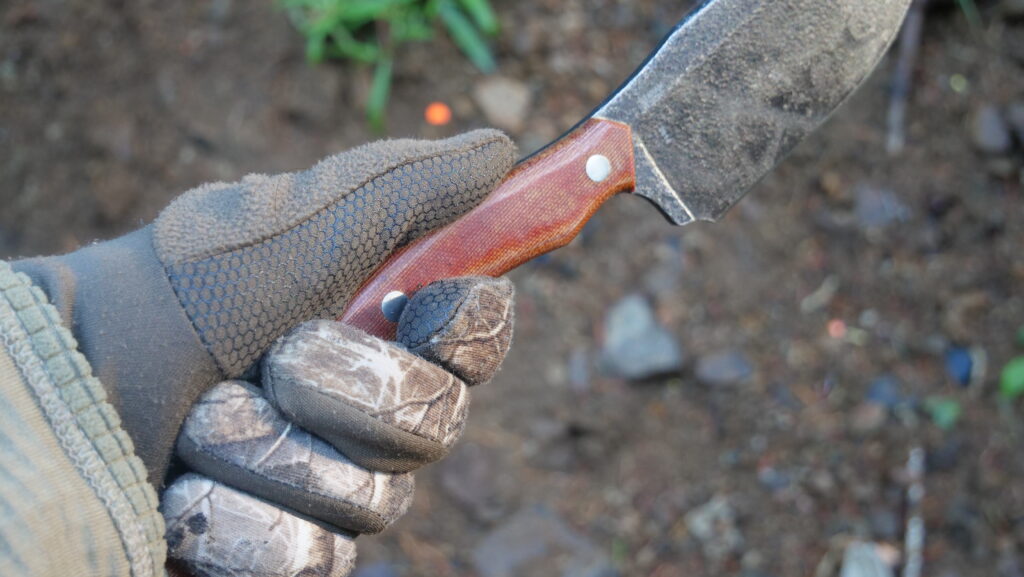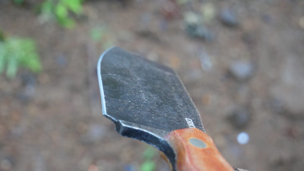Chopping power is decent, but don’t expect to rival an actual hatchet for speed when processing lots of kindling. On finer slices—think food prep or scraping out the cast iron—the flat grind and forward tip let you choke up and work detail with surprising precision with a decent amount of tool behind it too.