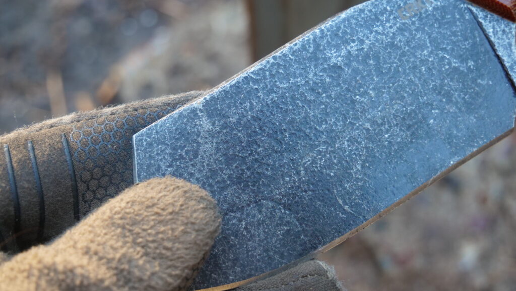 While the original finish is cool enough on its own, I think it looks even better after it’s been abused a bit. The already somewhat distressed look it comes with from the factory just does a great job of blending in with actual use, rather than ruining the “curb appeal” some knives typically lose after use.