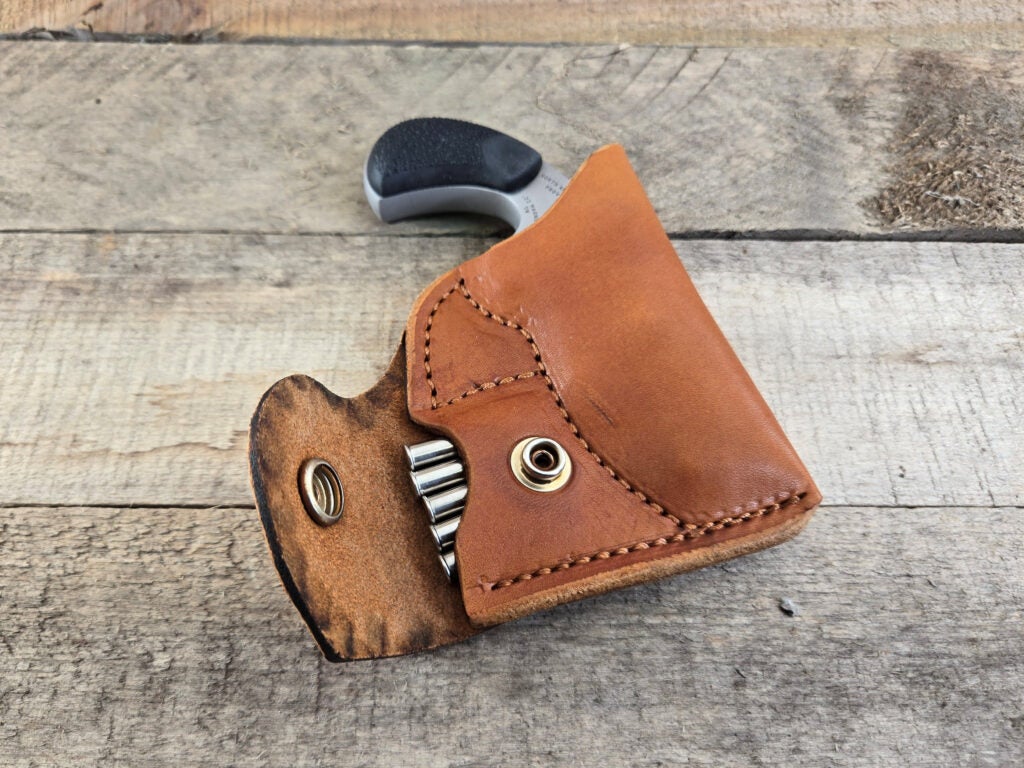 I ended up coming across a good fit on Etsy, of all places, though. Through my web search, I stumbled upon the Southern Charm Holsters shop and found a fellow NAA enthusiast behind the sewing machine, stitching up their leather pocket holsters.