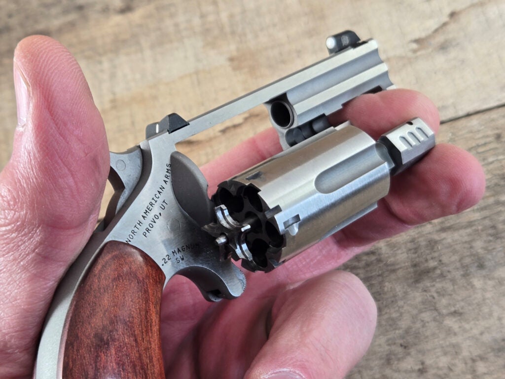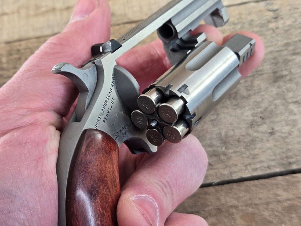 Stuffing a .22 Magnum round inside a swing-out cylinder revolver the size of the NAA Sentinel is no mean feat.