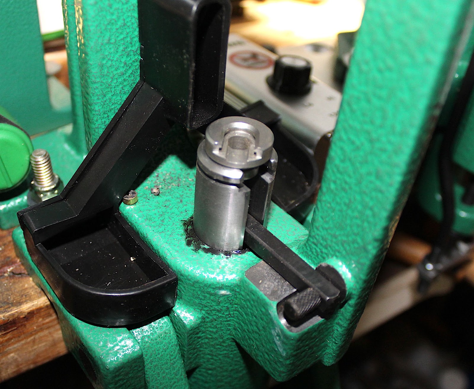 The cast-iron press itself is a marvel of engineering. My old RCBS Jr. press did not use compound linkage… that alone really helps with stubborn or large cases. Your force is multiplied when resizing cases with compound linkage. You also get a spent primer catcher, although I’ve yet to see one of those that can prevent at least a few primers from bouncing off the floor. I guess we’ll see. You can set the handle to operate on either the left or right side, so left-handed users have a choice. There is an optional base plate ($43) that makes mounting any RCBS press easy. It will “stiffen” whatever surface you put it on, and has holes pre-drilled. If the surface you’re mounting the press on is not overly firm, you might want to consider adding the plate to the mix.