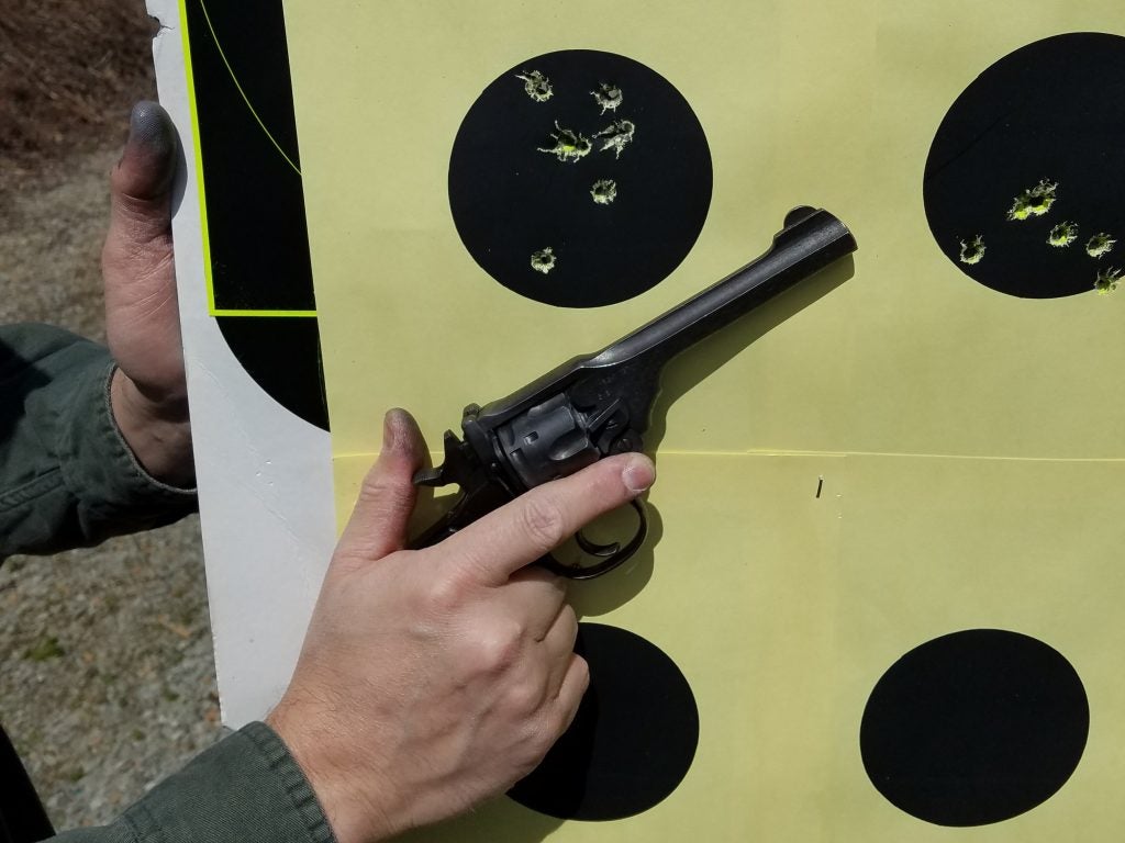 With readily available .38/200 ammunition you can now shoot these old British war horses without having to use Kentucky windage like the old days when only the lighter .38 S&W rounds could be found.