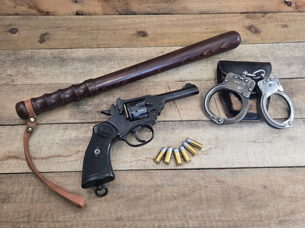 Both wartime models from the British military, and later models ordered well into the late 1960’s direct from Webley & Scott. Webley’s .38 MK IV was also widely adopted by police forces in Great Britain and across the Commonwealth. They saw particularly heavy use in Hong Kong and with the Royal Singapore Police.