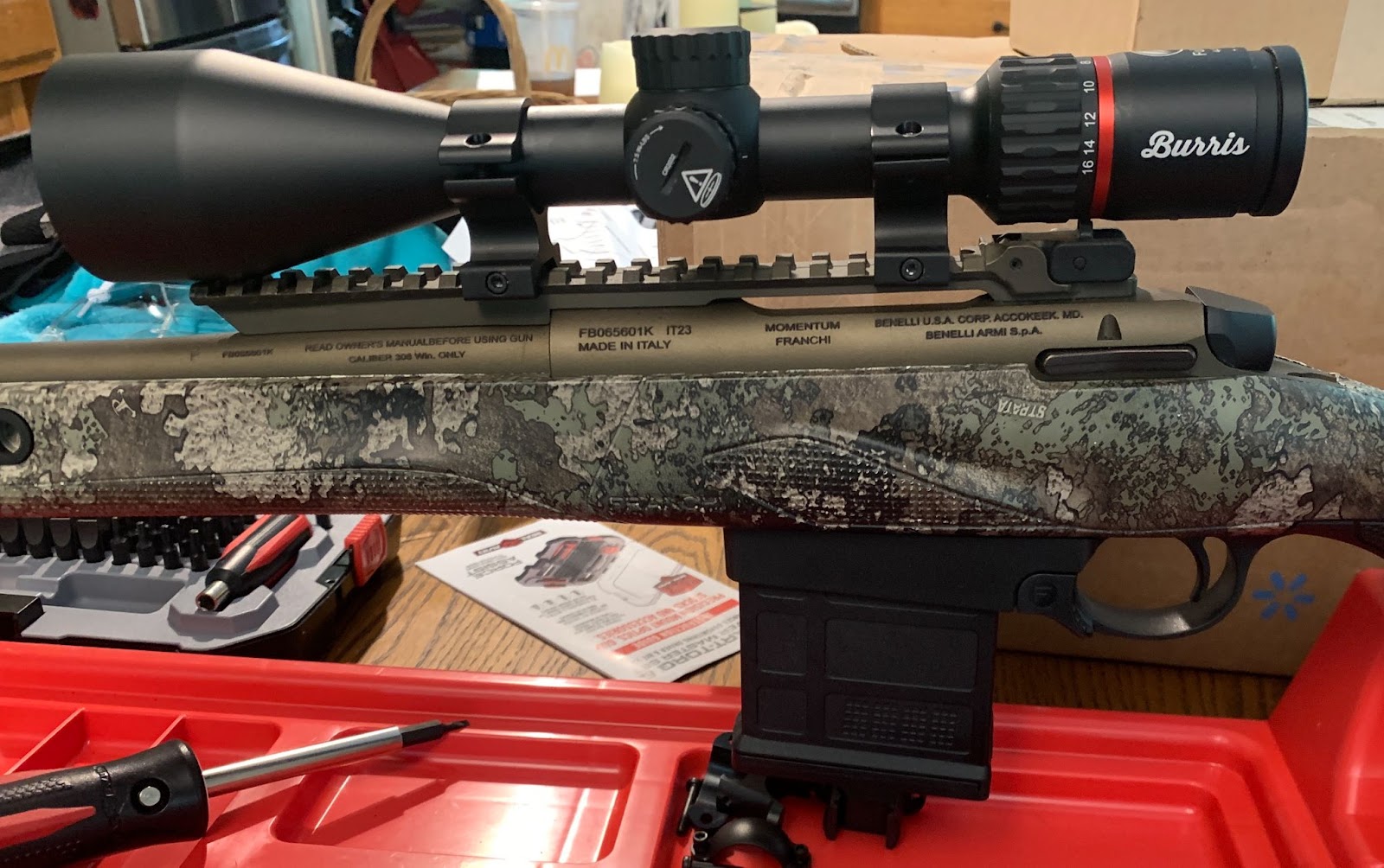 Another problem that the rifle had with medium-height rings is that it has built-in sights, and the rear sight sticks up just enough that I needed higher rings. Again, most rifles will not have this problem, especially if their objective lens is less than 50 mm and they have no built-in rear sight. In the photo below, you also see a Real Avid Smart-Torq & Driver master set and the MTM Case Gard Gun Vise. These are two items I would not like to have to do without… they are super helpful for any type of work performed on long guns. Look for my review of this rifle soon.
