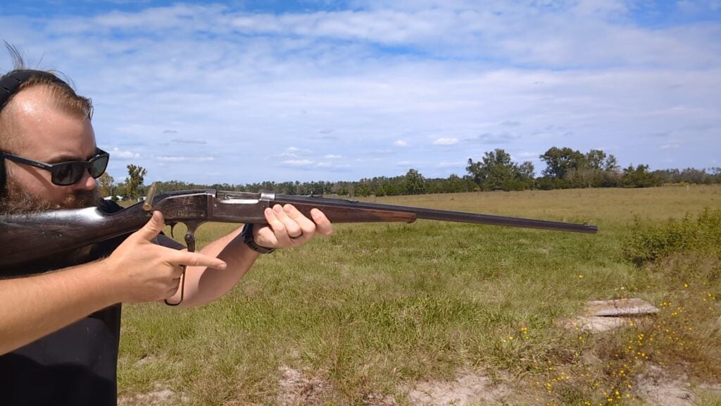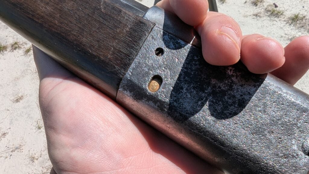 The Model 1899C has a crescent stock, and it’s odd. I thought it was instantly uncomfortable and assumed I had bigger shoulders than the average turn-of-the-century dude. It turns out that the crescent-style stock is supposed to rest against the upper bicep and not the shoulder. That made a lot more sense, but feels extremely awkward.