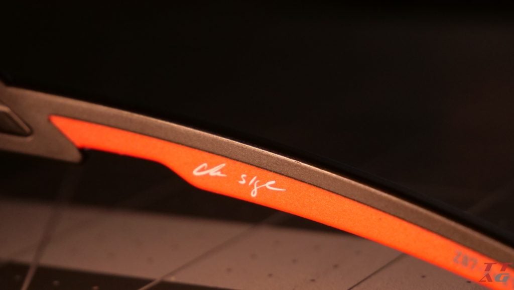 • Frame: Made from Triloid Nylon, known for its remarkable toughness and flexibility, the matte-black semi-rimless frame features red rubber accents that enhance grip and add a little bit of extra style. The “ultra-lightweight” frame weighs just 22 grams (0.78 oz), so it doesn’t add any significant weight to your EDC or range gear.